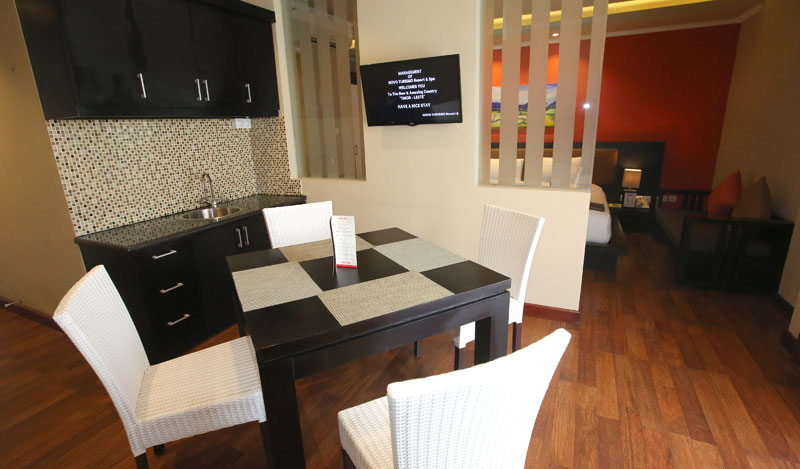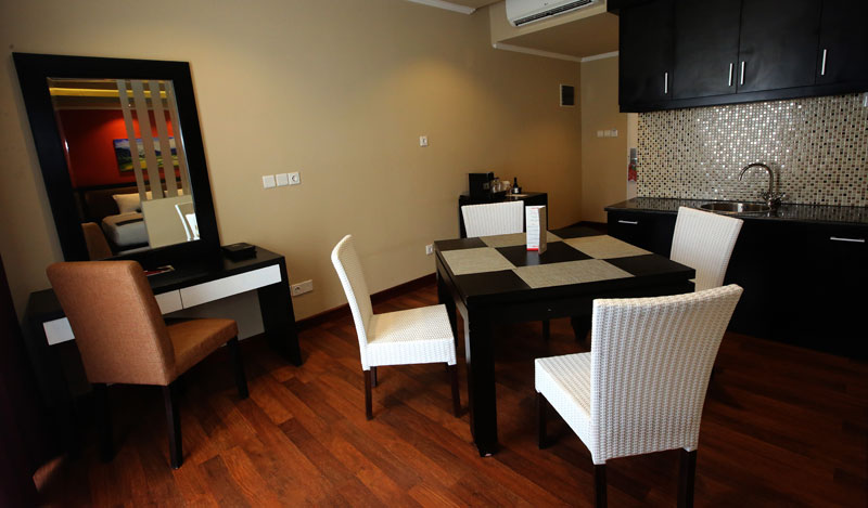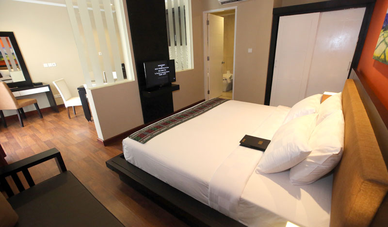 Average size of room 54.60 m2, all rooms with pool view. Free wifi in the room and room rate with breakfast of two. Bathroom with shower and bathtub, hot & cold water. Bedroom consist of LED TV with international channel, Digital Safety Deposit Box, Hair Dryer, tea & coffee facilities, coffee pot machine, digital scale & Alicia Magnifying Mirror.